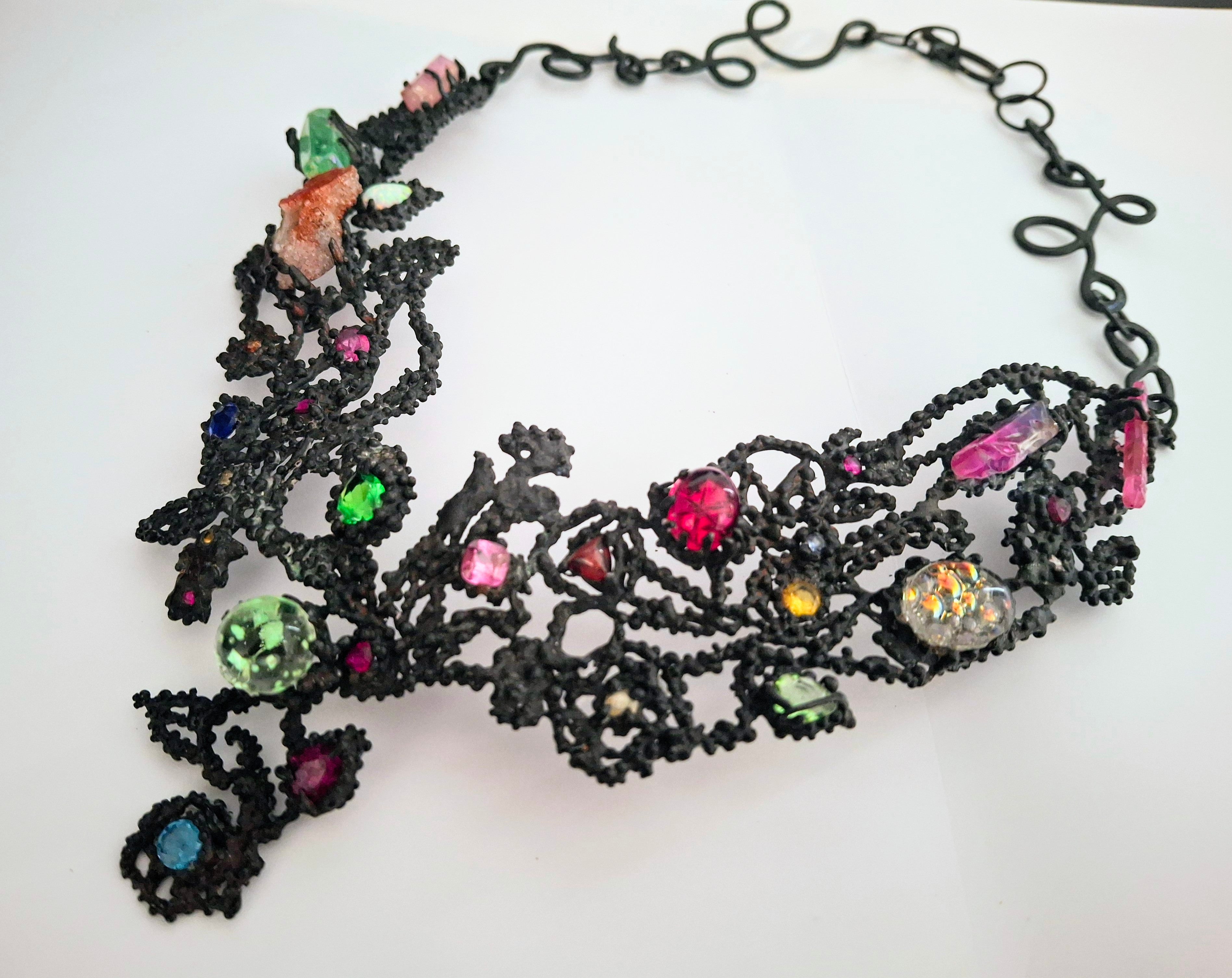 Jaf is a contemporary jewellery designer and artist based in Melbourne (Naarm). Holding an Advanced Diploma in Object and Jewellery Design, her training forms the foundation of her craftsmanship and artistic expression. Deeply inspired by personal stories, spirituality, and life experiences, her work reflects the richness of these influences. As an empath, Jaf finds solace in the whimsical, fantastical, and magical realms, offering an escape from the harsh realities of the world. Through her art and designs, she grounds herself, channelling her love for colour, detail, complexity, and uniqueness. Every piece she creates tells a story of self-discovery and growth, capturing the essence of both the maker and the wearer.
